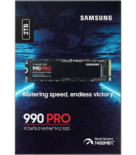 SSD Samsung 990 PRO M.2 2TB — высокопроизводительный твердотельный накопитель, рассчитанный на требовательных пользователей, которым важны скорость, надежность и большой запас памяти. Эта модель относится к премиальному сегменту PCIe 4.0 SSD и отлично подходит для современных игр, профессиональных программ, обработки крупных файлов и повседневной работы на высоком уровне производительности. Samsung 990 PRO в версии на 2 ТБ получил интерфейс PCIe 4.0 x4, поддержку NVMe 2.0 и впечатляющие показатели последовательного чтения и записи до 7450 и 6900 МБ/с соответственно.